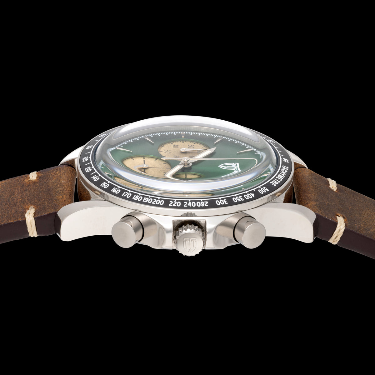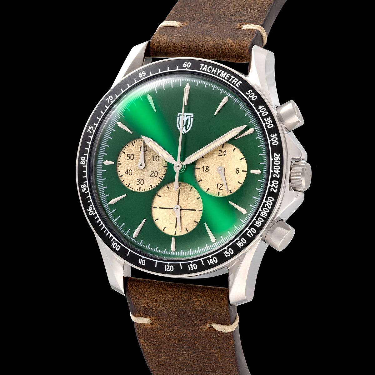 MT&W Racing Green Vintage Chronograph Watch with Unique Patina