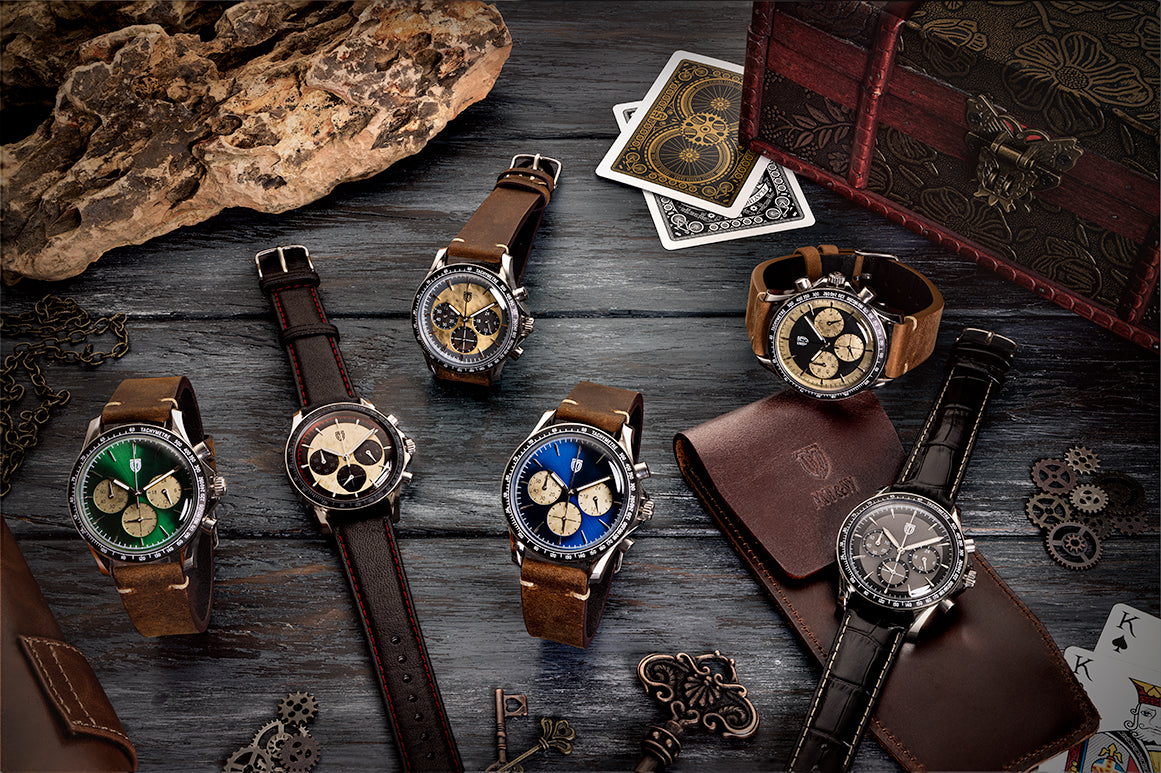 A small handful of brands make up most of the sportstimepieces market, relying on their familiar names for commercial success. We decided it was time for something new. We launched MT&W in 2020 for modern vintage timepieces fans like ourselves who were tired of overpaying for quality timepieces or wasting their time rummaging through vintage markets to find a hidden gem. Our collection is designed to be affordable without compromising on quality. Browse our catalogue and discover the timeless aesthetic of MT&W.